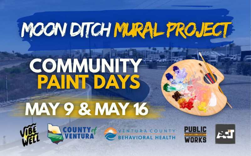 | WHAT: | The County of Ventura invites the public to take part in upcoming Community Paint Days for the Moon Ditch Mural, a landmark public art project transforming a nearly mile-long flood control channel into one of the largest murals in the region. The mural explores the intersection of healthy environments, community connections, and how together they support mental health and wellbeing. |